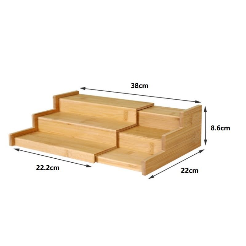 - Maximize your space: 3 tier bamboo spice rack make efficient use of your countertop and cabinet space. It can also be used to display your collectibles, such as pop figures, figurines, shot glasses, rocks etc.