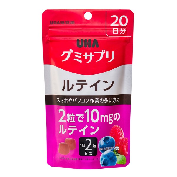 UHA Gummy Supplements, Lutein, Mixed Berry Flavor, Stand Pouch, 40 Tablets, 20 Day Supply