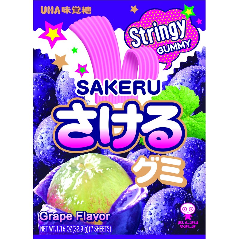 - UHA Mikakuto Sakeru Stringy Gummy Grape 1.16 OZ (Pack of 10)