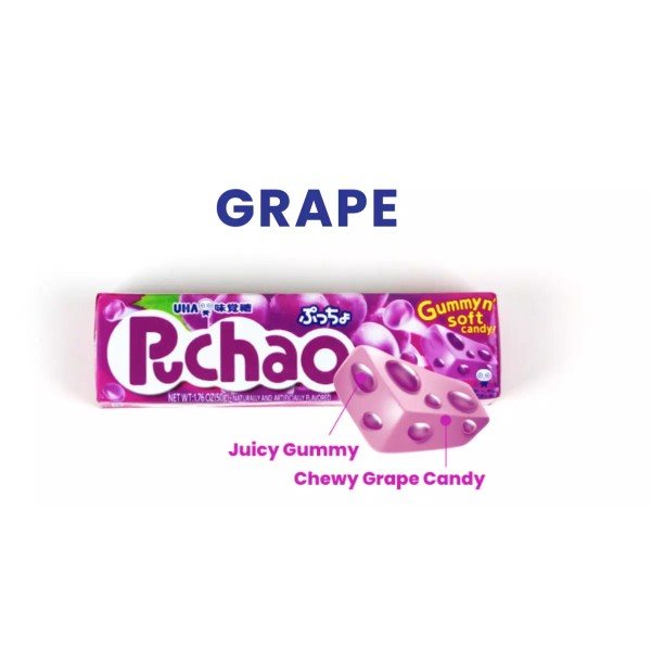 UHA Puchao Chewy Candy1.76oz Strawberry Cola Ramune Soda Grape Melon Mango Japan - Grape