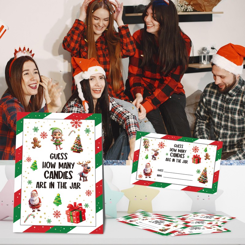 UHADRE Guess How Many Christmas Game, Christmas Party Game, Baby Shower Guessing Game, How Many Cards, Candy Guessing Game Sign and Cards Set(One Sign with 50 Cards)-SDGC01