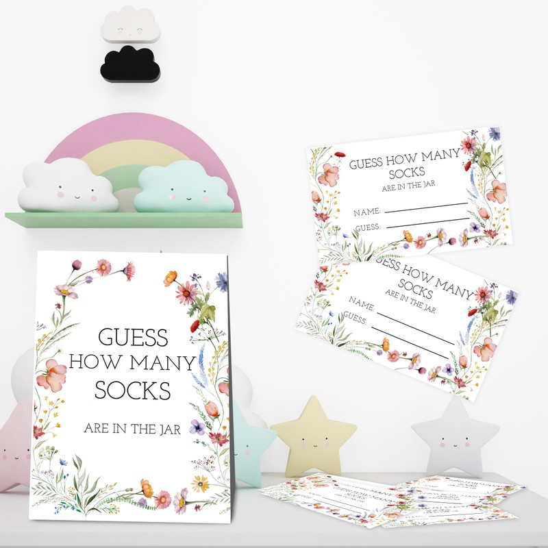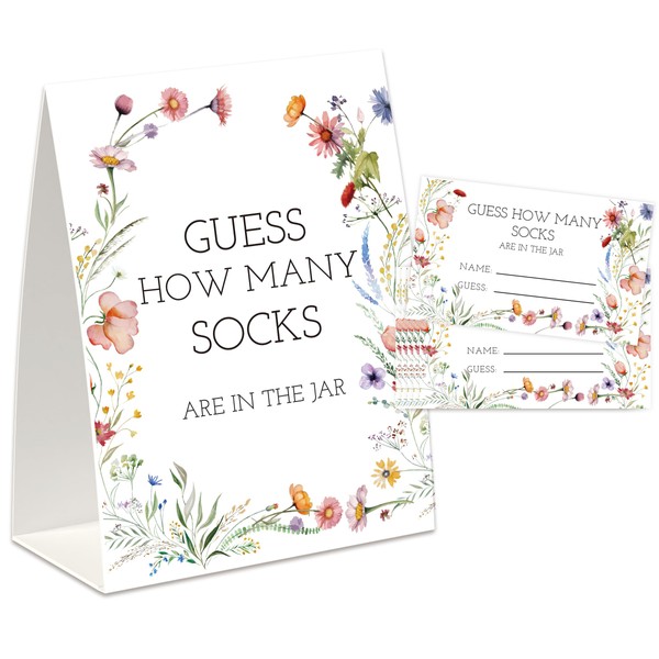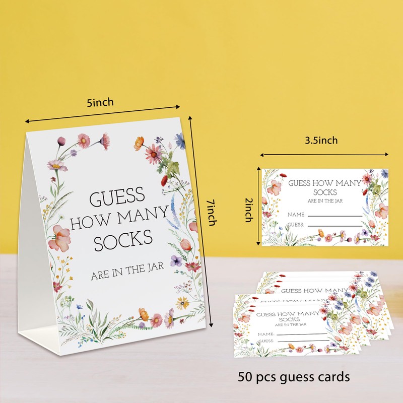 UHADRE Guess How Many Socks Game(One Sign with 50 Cards),Baby Shower Game, Floral Bridal Shower, How Many Cards, Sock Guessing Game Sign and Cards Set-GHMS02