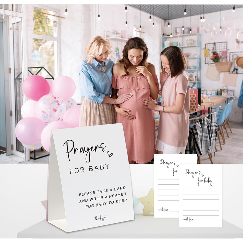 - 【Package]】you will receive one 5"x7" standing sign and 30 pcs of 4"x6" prayers for baby cards for baby shower.