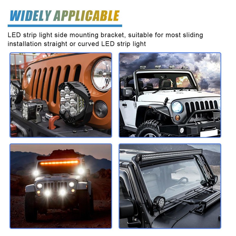 - 【Wide Application】: This car mounting bracket is suitable for double-row light strips and is applicable to parts such as the grille guard tube, bumper, and roof luggage rack of automobiles. It is compatible with 18 W, 36 W, 60 W, 72 W, 108 W, 120 W, 180 W, and 240 W straight or curved LED light strips ranging from 4 inches to 52 inches.