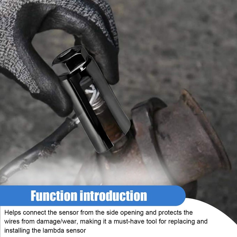 • 【Practical Design】:This automotive oxygen sensor sleeve adopts a standard 6-point slot combined with a side opening design. The side wire door can effectively protect the wires from wear and tear, and also finish the repair work without disconnecting the wiring harness. The internal groove strengthens the firm engagement between the sleeve and the sensor, effectively preventing loosening and slipping, ensuring safe and reliable operation.