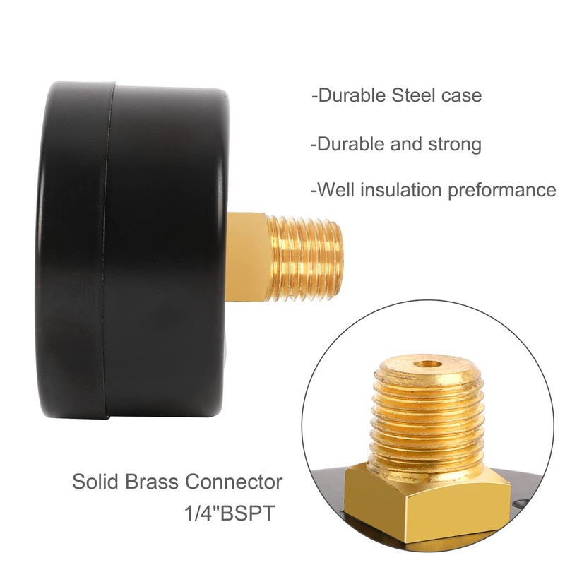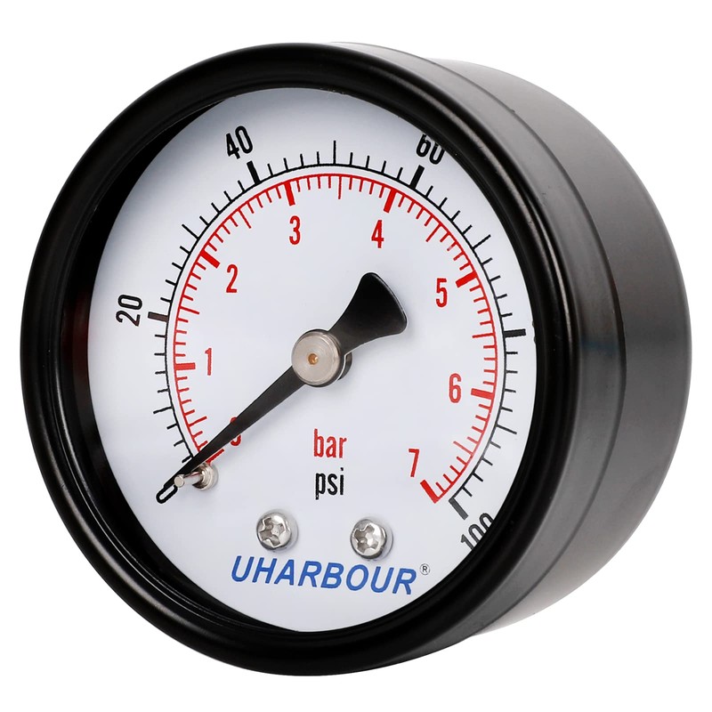 Uharbour Reliable Dual Scale Mechanical Manometer Low Pressure Gauge for Gas and Water (100psi/7bar) with 1/4" BSPT BACK Connection…