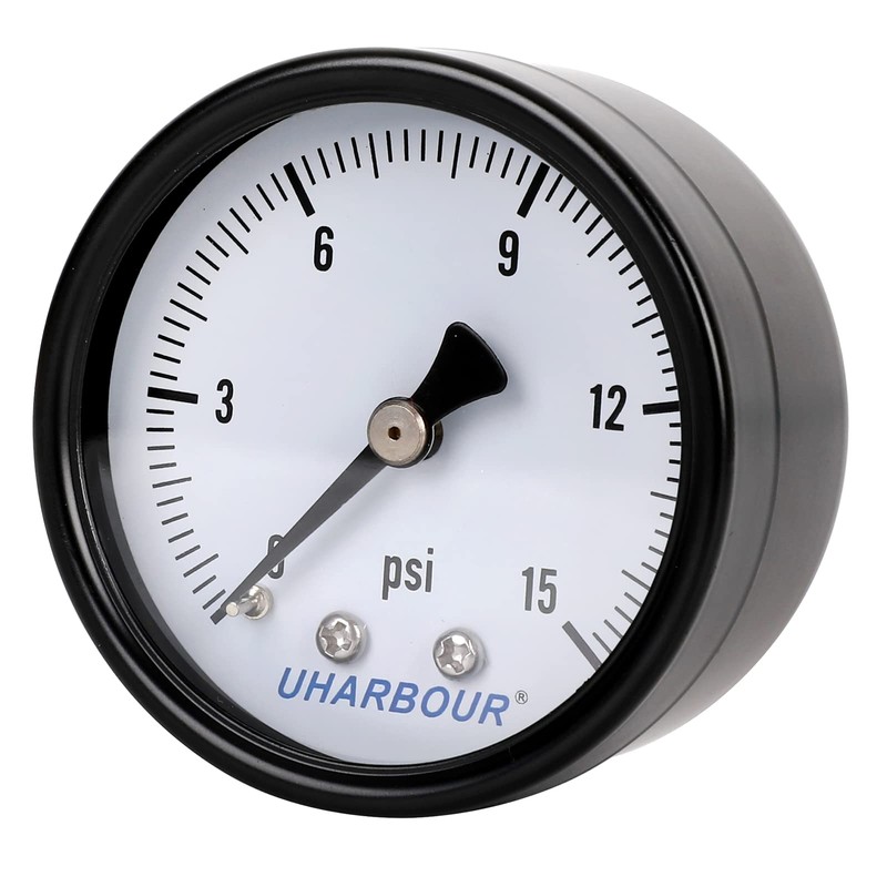 Uharbour Reliable Single Scale Mechanical Pressure Gauge for Gas and Water (15psi) with 1/4" NPT Back Connection…