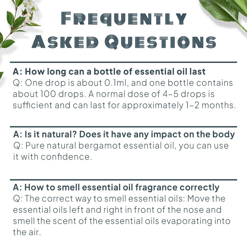 - Our bergamot oil is specially formulated to enhance your well-being. Its refreshing scent helps elevate mood, reduce stress, and promote relaxationideal for aromatherapy sessions, meditation, or yoga practice. Simply add 3-6 drops to your diffuser to transform any room into a serene oasis.