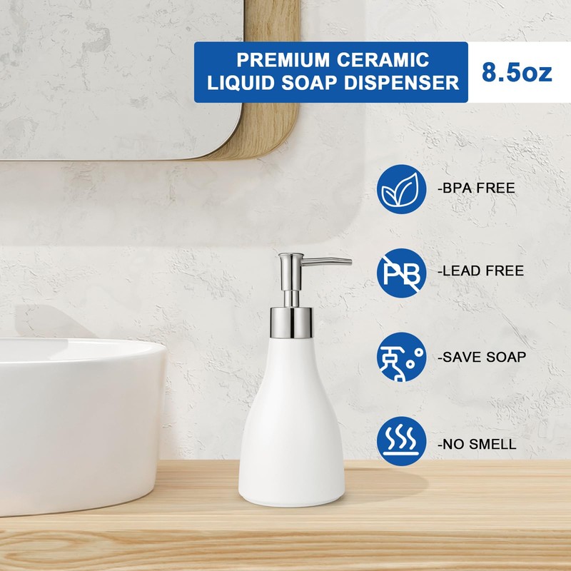 - 【Easy to Clean】The smooth ceramic surface can be easily wiped clean with a damp cloth, and the detachable pump or dispenser can be thoroughly rinsed under running water.