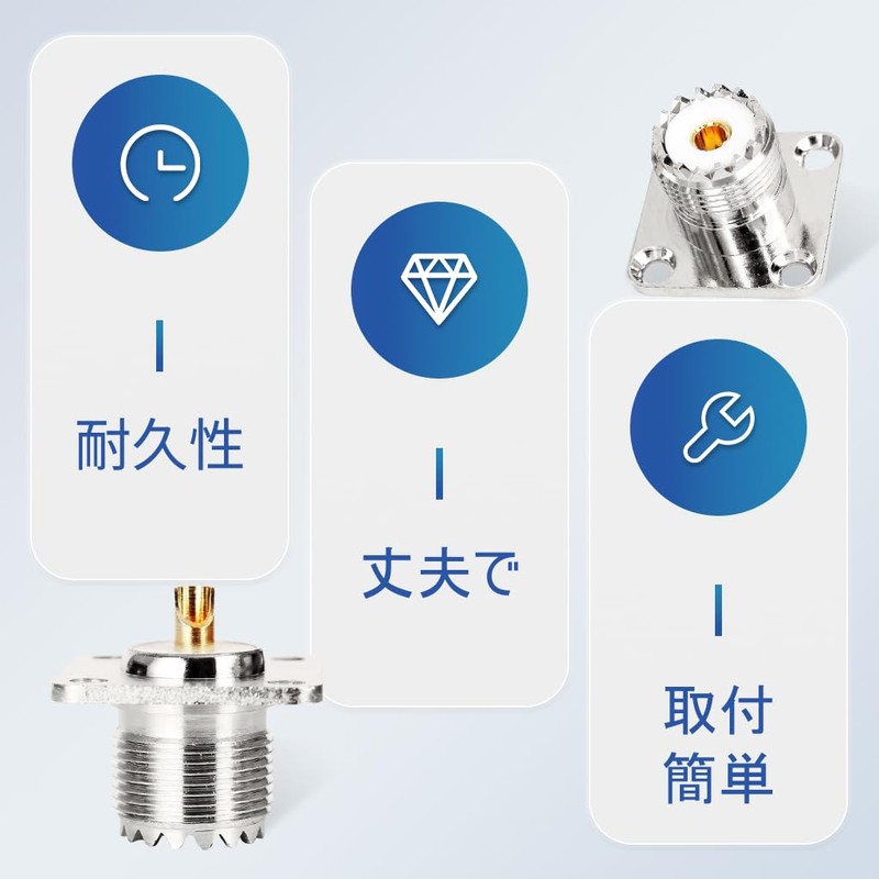 - Set Contents: UHF female connector, 4 holes, 2 pieces