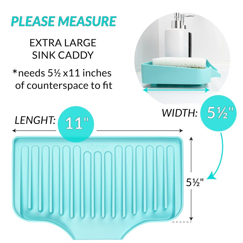 UHMER Silicone Sink Tray - Extra Large Self-Draining Tray for Soap Bottles, Quick-Dry Silicone Sponge Holder - Turquoise