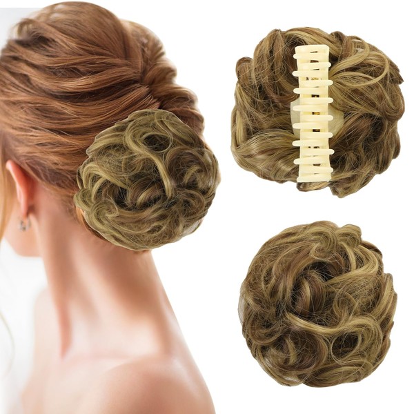 UHOMENY Wig Hair Clip Claw Clip Claw Messy Bun Hair Piece Wavy Curly Large Hair Bun Hairpiece Curly Synthetic Hair Bun Extensions Women's Ponytail Hair Accessories (Brown and Gold)