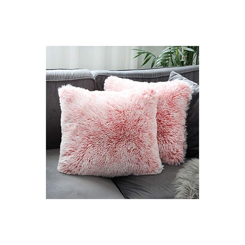 Uhomy Home Decorative Luxury Series Super Soft Style Artificial Fur Throw Pillow Case Cushion Cover for Sofa/Pink Ombre Peach 20x20 Inch 50x50 cm Set of 2