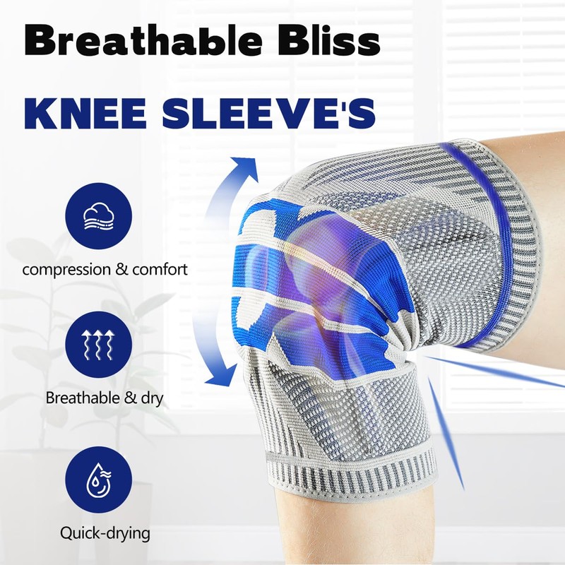 - Upgraded for Performance: Our knee supports boasts a special knit technology design with two silicone strips and high-elasticity fabric. Say goodbye to slippage, as this upgrade ensures a secure fit. Whether you're working out or going about your daily activities, expect stable compression, optimal muscle support, and total knee joint protection.
