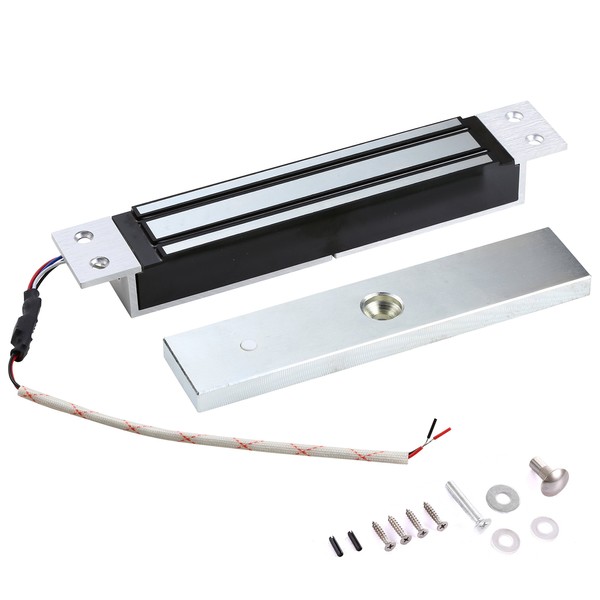 **Specifications:** Main Body Size: - Approx. 228(L)x38(W)x26.5(H)mm / - Approx. 8.98(L)x1.50(W)x1.04(H)in Armature Plate Dimension: 180Lx38Wx11H(mm) / 7.09(L)x1.50(W)x0.43(H)in Holding Force: 280kg / 600Lbs Input Voltage: 12 or 24VDC Current Draw: 12V/500mA or 24V/250mA Suitable: Wooden door,Glass door,Metal door,Fireproof door Surface Temp: Lesss than +20℃ / 68℉ Operating Temp: -10℃~+55℃(14℉~131℉) Humidity: 0~90%(non-condensing) Cover Finish: Anodized aluminum Lock Finish: Zinc Armature Plate Finish: Zinc Weight: 2.1KG / 4.63lb