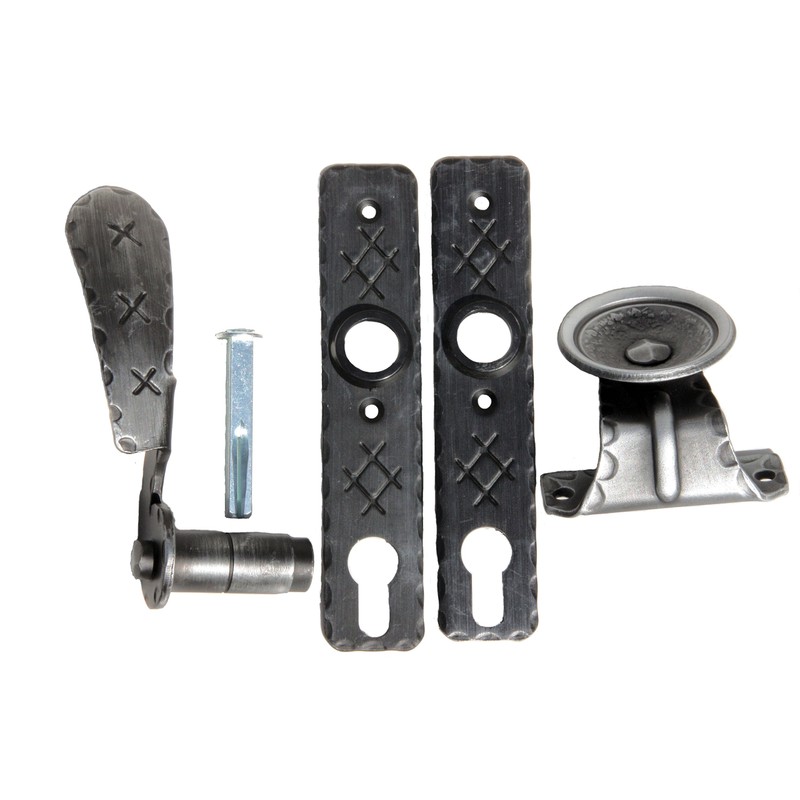 - Weatherproof. Thanks to the durable material, the iron door handle set is not only suitable for interior doors, but also for outdoor use. The surfaces are galvanised and black patinated, so the set is rust-proof and weather-resistant