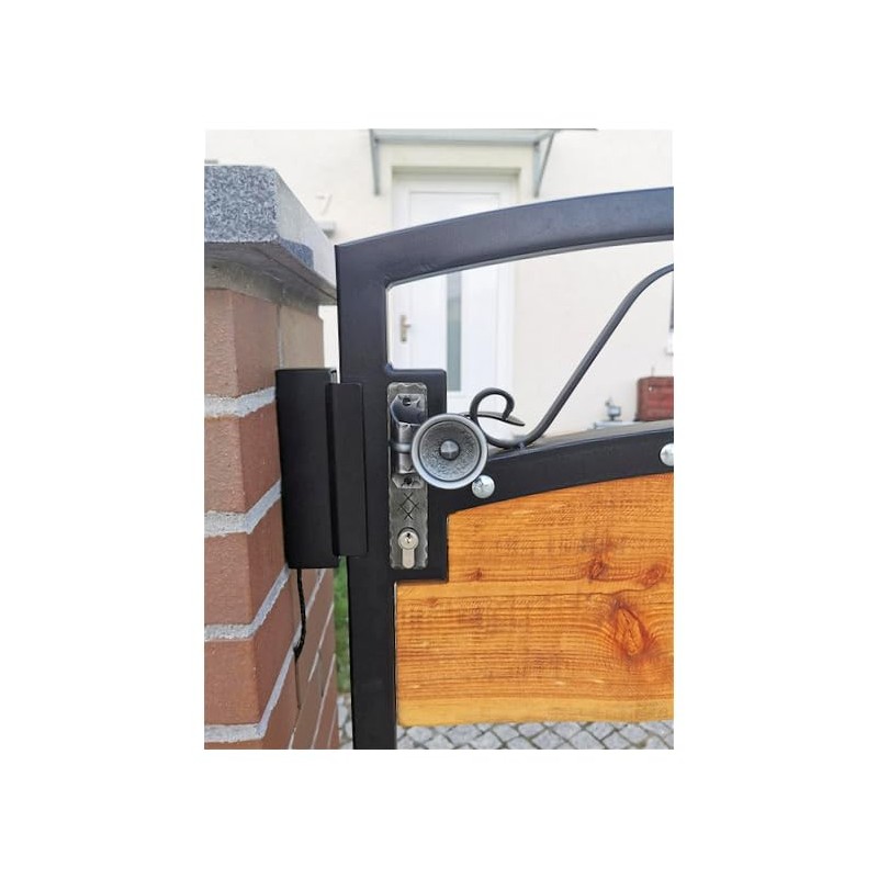 - For the garden gate: the beautiful set fits perfectly on your garden door. Closed from the outside and easy to open from the inside with the jack. With the short plates, the distance from the handle hole to the locking cylinder is 72 mm and the mounting holes have a distance of 67 mm. These dimensions fit exactly on standard lock boxes on the yard gate, garden door, swing gate and also on many front doors, side entrance doors, etc.