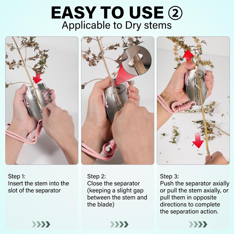 - Easy to Use: This bud stripper is easy to operate with either hand. Simply insert the stem into the opening slot, close the separator (leaving a slight gap between the stem and the blade), and then push the separator axially or pull the stem, or pull both in opposite directions to complete the separation process