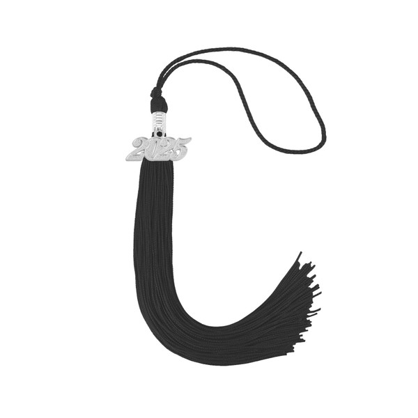 UIALECG Graduation Single Color Tassel with Date Drop 2025(Black Tassel,Silver Charm)