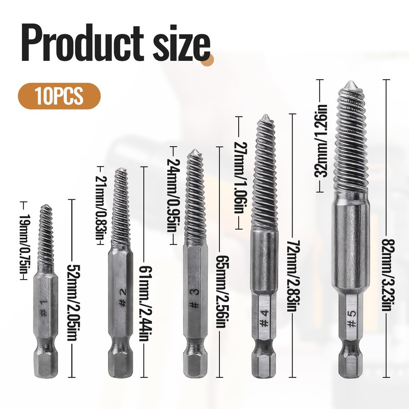 Versatile Screw Extraction: Capable of easily extracting stubborn, rusted, cracked, or stripped screws, studs, bolts, fasteners, and nuts, catering to a wide range of removal needs.