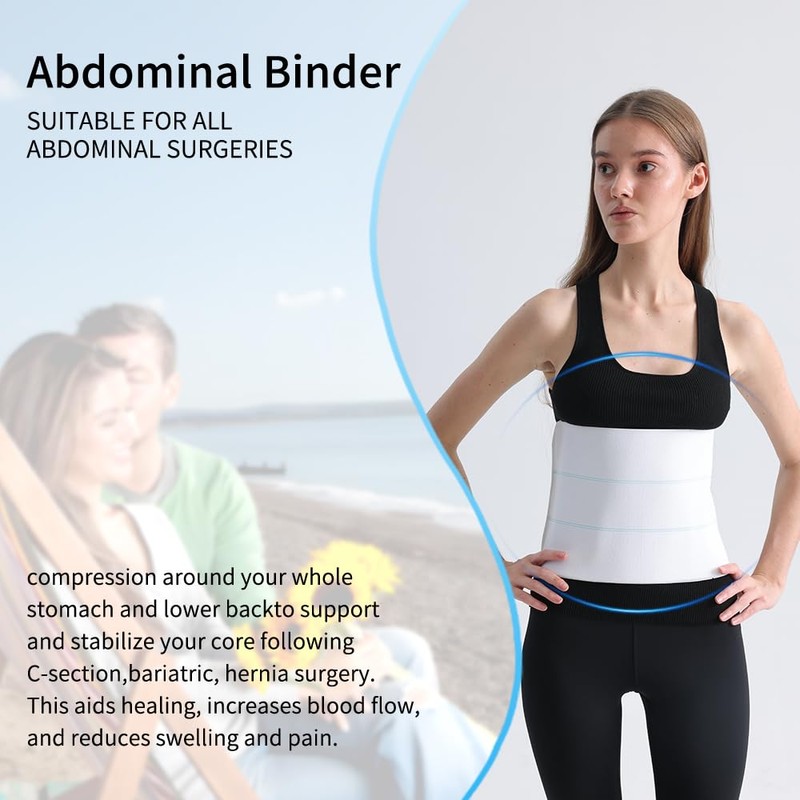 - postpartum belly binder designed for women after c-section, hysterectomy, or abdominal surgery, providing gentle compression and support to aid recovery and reduce discomfort.