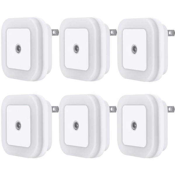 Uigos LED Night Light Lamp with Smart Sensor Dusk to Dawn Sensor, Daylight White, 0.5W Plug-in, 6-Pack