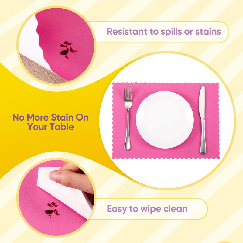 - Simple and Elegant Design: the disposable place mats are designed with solid color and scalloped edges, simple and lovely, which can be nice decorations for your table, meeting your different using demands