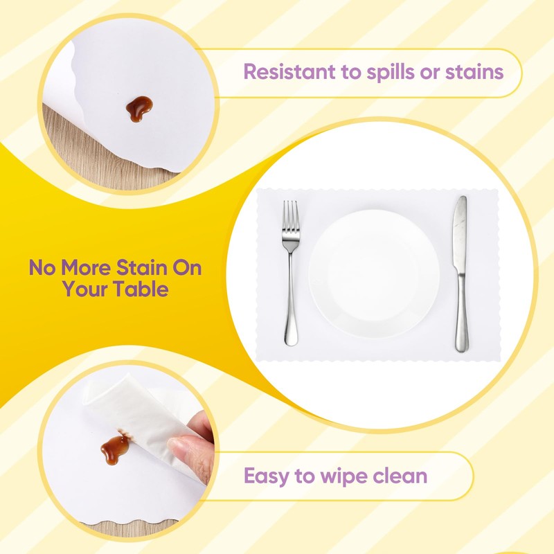 - Reliable and Qualified: the thick placemats are made of quality paper, reliable and sturdy, which can hold up against spills, stains, or any other forms of messes while looking neat and tidy