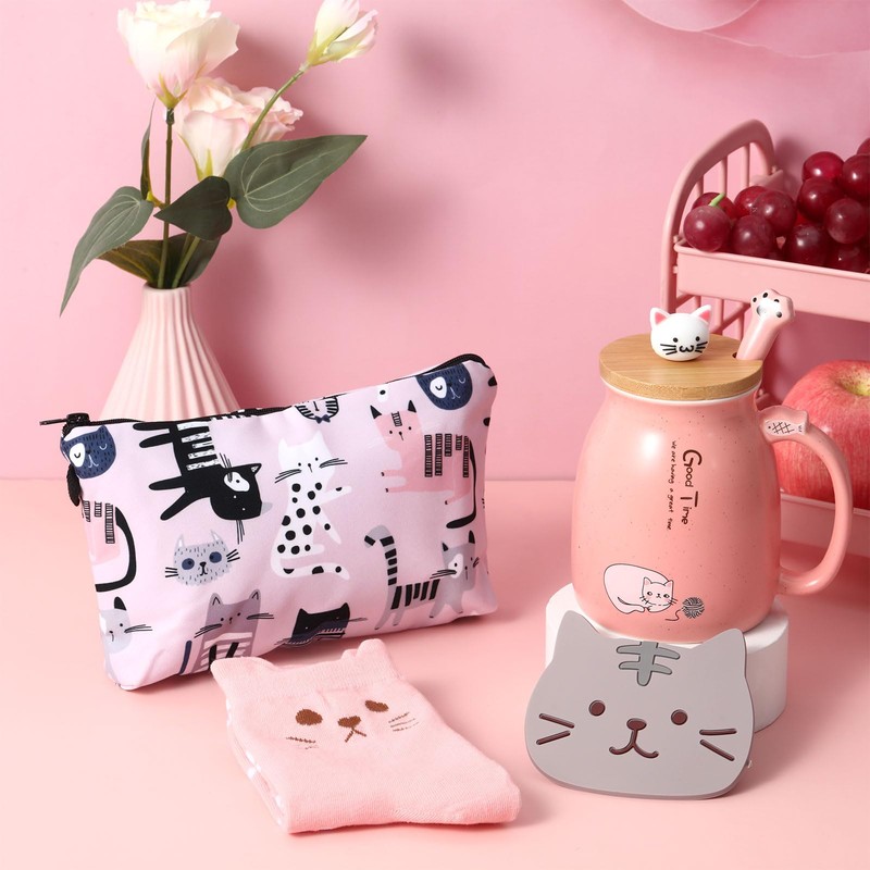 - Cute and Exquisite Design: our cat themed gifts for women are full of cat elements, including a spoon with a cat paw handle, cat shaped socks and coasters, as well as makeup bags and cups with cat patterns, making your home a lovely and warm atmosphere; It may make your child like drinking water
