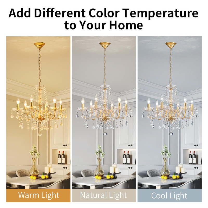 - Elegance 6-Light Design: Featuring 6 E12 lamp sockets with various bulb types, such as incandescent, LED, CFL, and halogen bulbs (Bulbs NOT Included). The dining room chandelier provides ample illumination to brighten up create a cozy ambiance for you.
