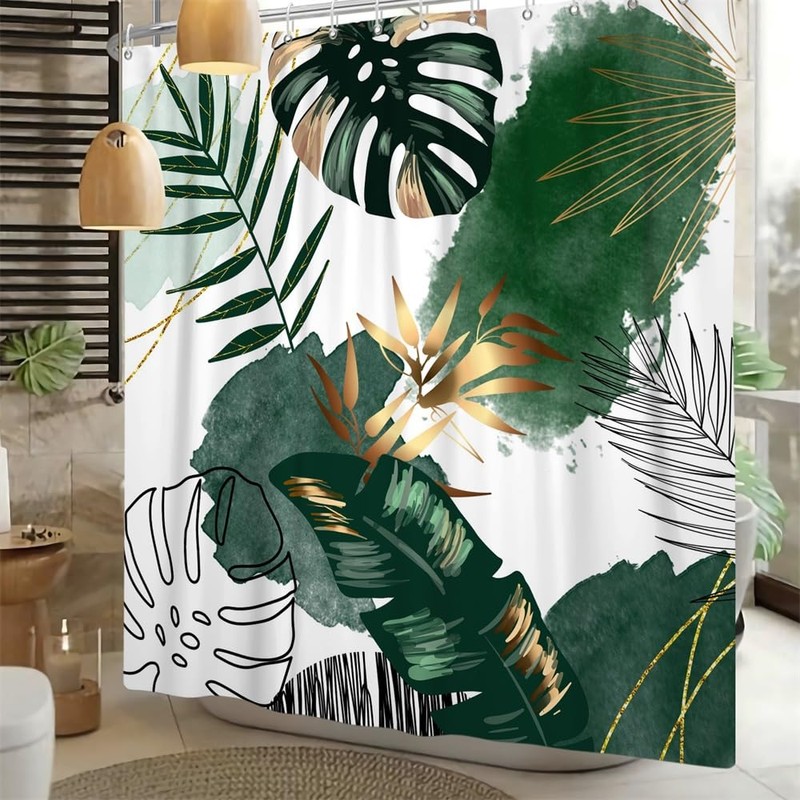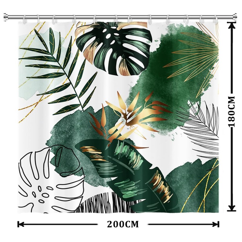 - Ideal dimensions: shower curtain green gold measures 200 wide x 180 cm high with 12 hooks, it can be used alone as a shower curtain or as a liner for the shower curtain. Instantly update any bathroom decor theme and provide an incomparable, upscale look and effortlessly adapt to the surrounding decor.