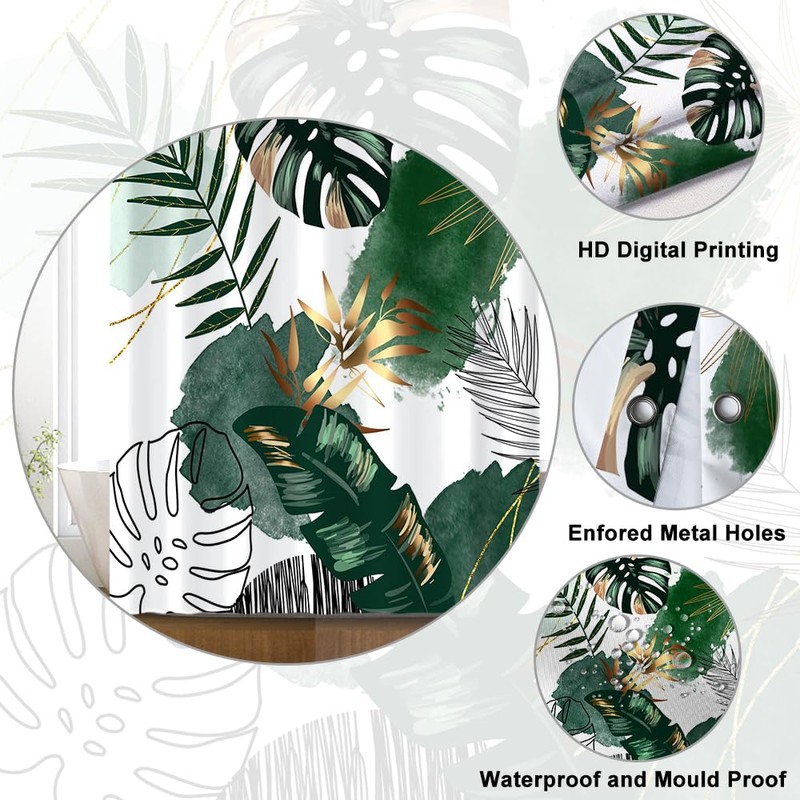 - Easy installation: shower curtains palm leaves easily fit into any standard size shower/tub and work with straight or curved shower rods. C-shaped hooks made of ABS and rust-proof metal eyelets can help you open and close the shower curtain smoothly.