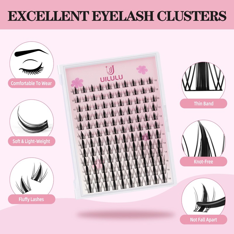 - Premium Light-Weight Soft Fibers - Uilulu lash clusters are made of premium light-weight fibers. Born soft PBT materials bring ultimately comfortable experience to wear the false eyelashes as your own natural lashes. Not heavy on your lids. Keep a stable curl for natural look and it’s comfortable to wear all day long