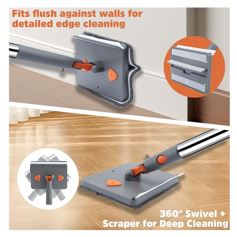 • 【Two Mop Heads, Five Fabrics】Comes with a triangle and rectangle mop head, plus 5 types of reusable pads: microfiber, chenille, and sunflower, each fabric comes with 2 pads. Whether for dry dusting or wet scrubbing, this microfiber mop is ready for every surface and mess