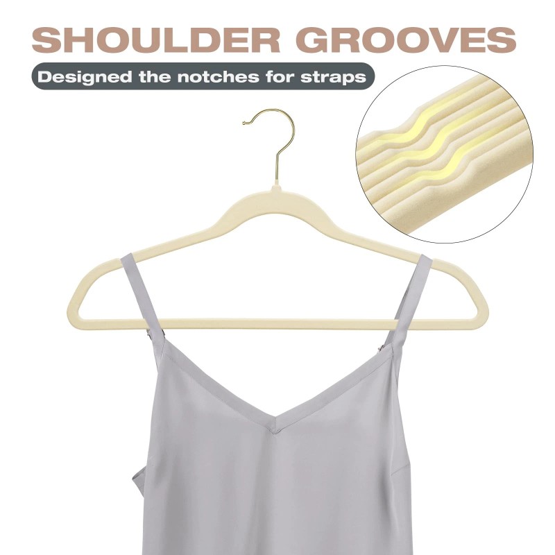 Uinicor 50 Pack Beige Velvet Hangers,Non Slip,Heavy-Dut