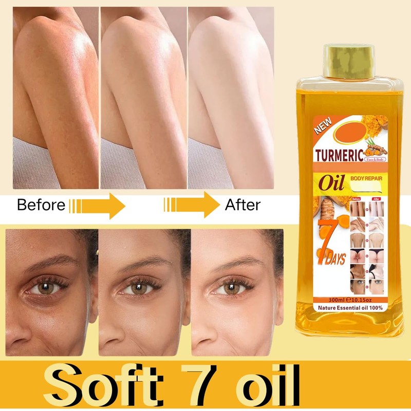 - Easy To Use: After cleansing the skin, apply an appropriate amount of soft 7 turmeric body oilSqueeze a little into your hands and rub it in before applying it to your face, and gently massage until absorbed.