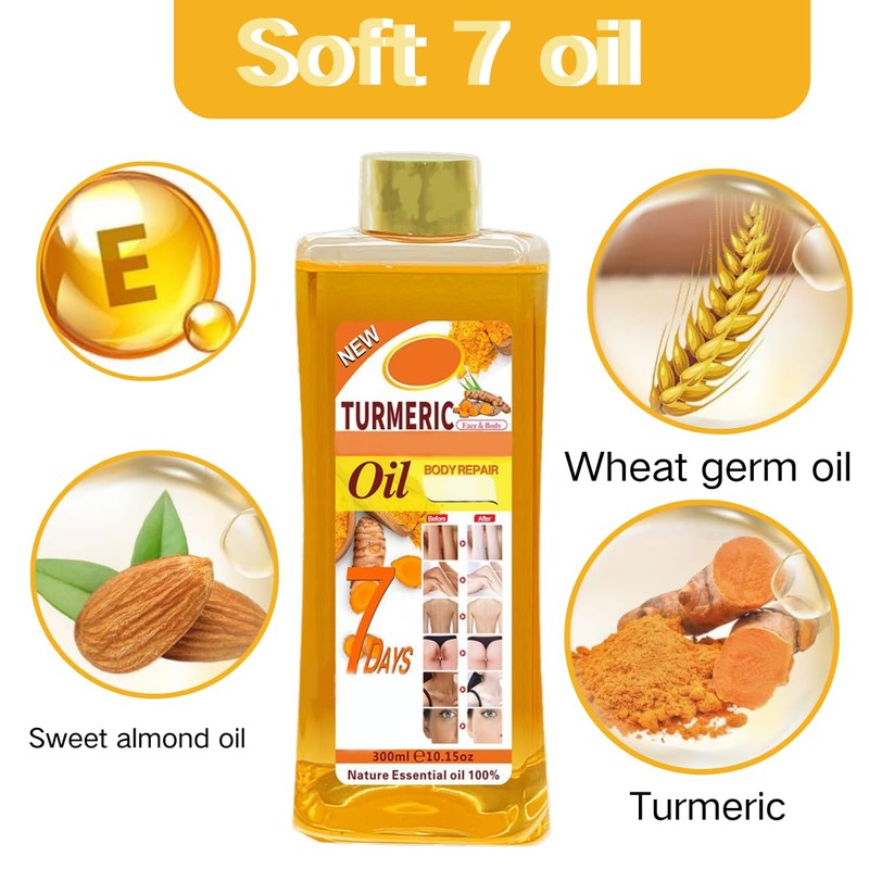 Uioecn Soft 7 oil, Soft 7 Turmeric oil for skin, For face and Body, Natural Moisturizing and Smoothing Body Oil