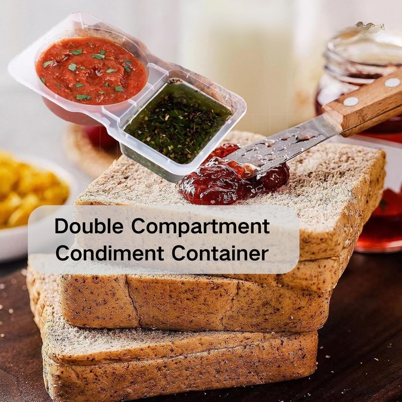 - Double Condiment Containers With LidsDouble compartment condiment container can store or hold side dishes, sauces, salad dressings, etc.Leak-proof Design, containers are designed to keep your food fresh and neat, Storing them in the fridge.