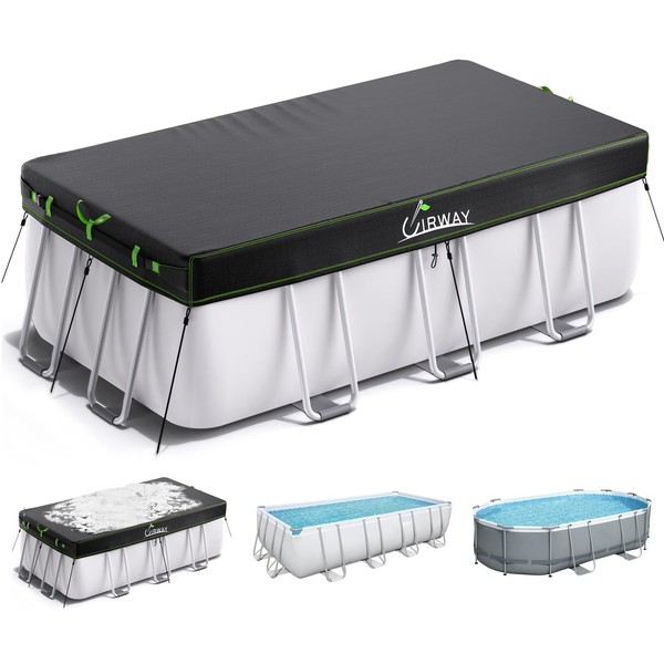 - 【Durable Protection】Rectangular pool cover is made of 420D painted silver material and equipped with windproof ropes and ground nails. It provides reliable protection against debris, leaves, and harsh weather elements, extending the life of your pool.No standing water goes through the cover to keep your water fresh, It's a money saver