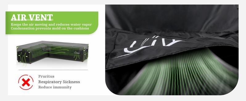UIRWAY V-Shape Outdoor Sectional Sofa Cover Waterproof with Air Vent, Heavy Duty Patio Furniture Covers, Outdoor Couch Cover with Reflective Strips - Colour: 300*300*87*80/65cm