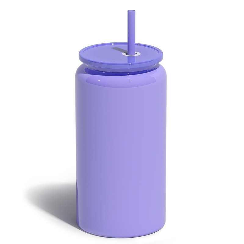UIRZOTN Glass Cups with Lids and Straws, 16oz Stainless Steels Cups, Beer Cups, Iced Coffee Cup, Smoothie Cup, Sublimation Tumbler, Purple (Smooth Polished Finish, Sublimatable)