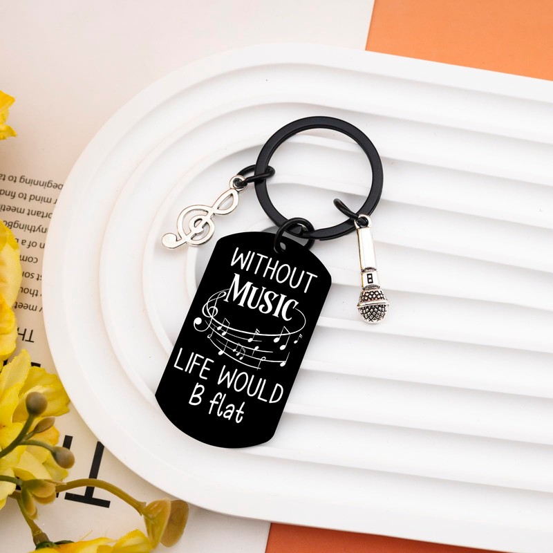 - Music Gifts For Men/Gifts For Music Lovers: This music keychain perfectly combines musical notes with the emotion of life, and touches people's hearts with the funny phrase "WITHOUT MUSIC LIFE WOULD B flat". It is a small item designed for musicians to remind them that music makes life more complete. Piano gifts for men, cool gifts for musicians men, music lover gift ideas.