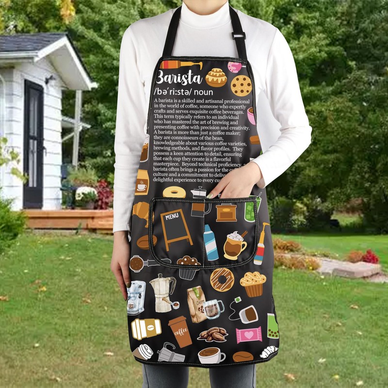 UJIMS Coffee Barista Gifts Barista Baking Apron Coffee Lovers Gifts Caffeine Addict Gift (Barista Apron)