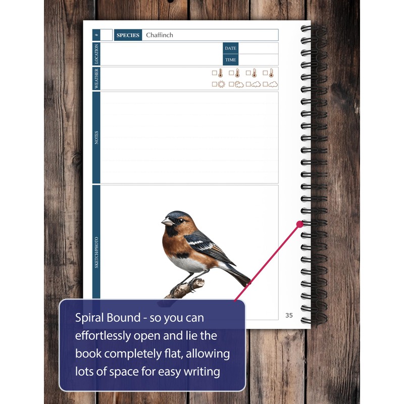 - Here are some other features of this journal: 148 total pages for 120 bird entries | A5 SIZE (148x210mm) | COLOURED interior | SPIRAL BOUND - so you can effortlessly open and lie the book completely flat, allowing lots of space for easy writing.