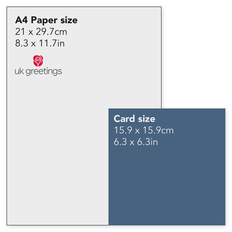 - SIZE - This card measures 165 x 165 mm, ample space for a personal message, and a perfect size for displaying as a keepsake in your home.