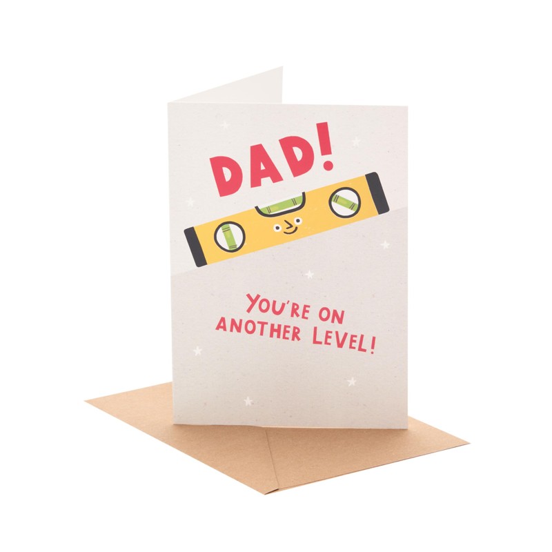 - DESIGN - A fun and contemporary birthday card for your dad, featuring a sleek illustration of a spirit-level and a complimentary pun-based sentiment.