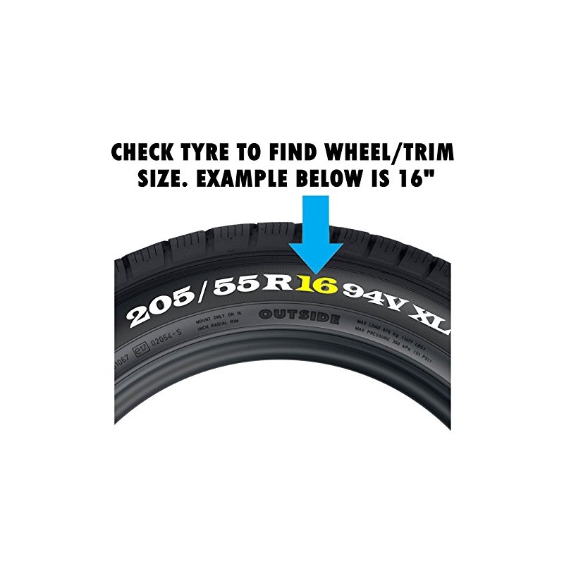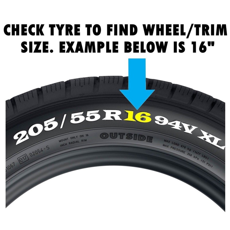 - Please check the tyre for the trim size required. For example 205/55/15 or 205 55 R15, the last number in this case 15 will be the wheel size.