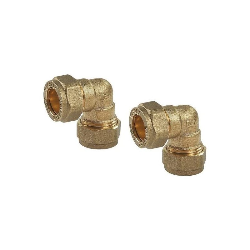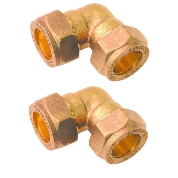 UKDD® 15mm Elbow Angle Brass Compression Connector- Suitable for Copper, Plastic Barrier Pipe WRAS Approved - Pack of 2