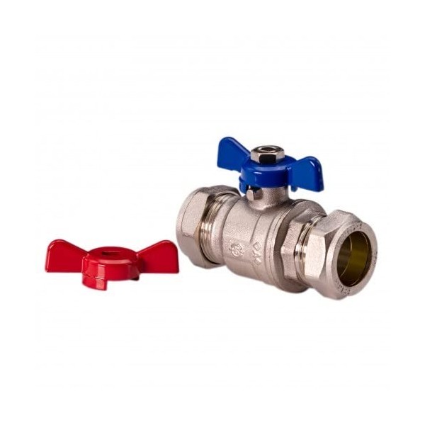 UKDD® 15mm Heavy Duty Full BORE Butterfly Ball Valve Isolation Valve with RED & Blue Handle Compression WRAS Approved Thumb Trun Handle
