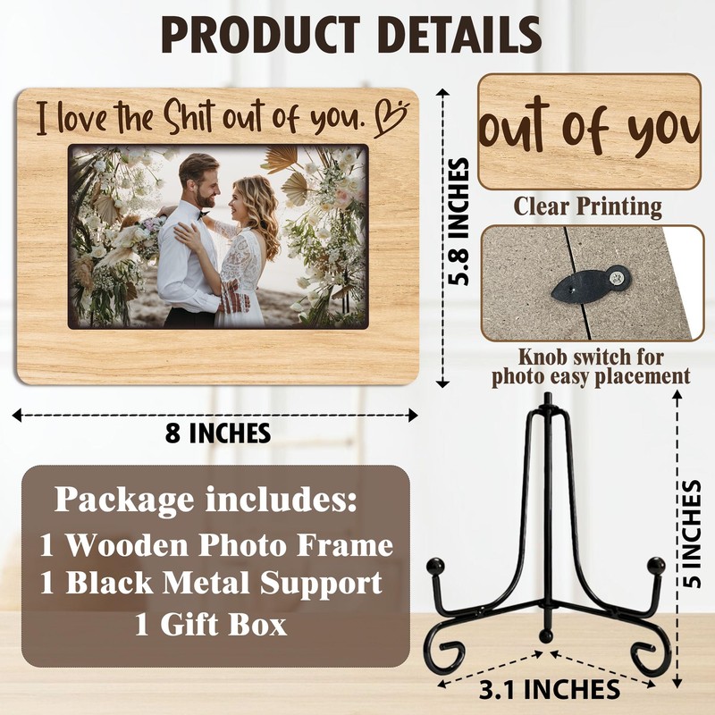 - Size and Packaging: This photo frame measures 8 x 6 inches and contains 1 wooden picture frame, 1 black metal stand and 1 beautiful gift box, which can perfectly accommodate 6 x 4 inch photos.